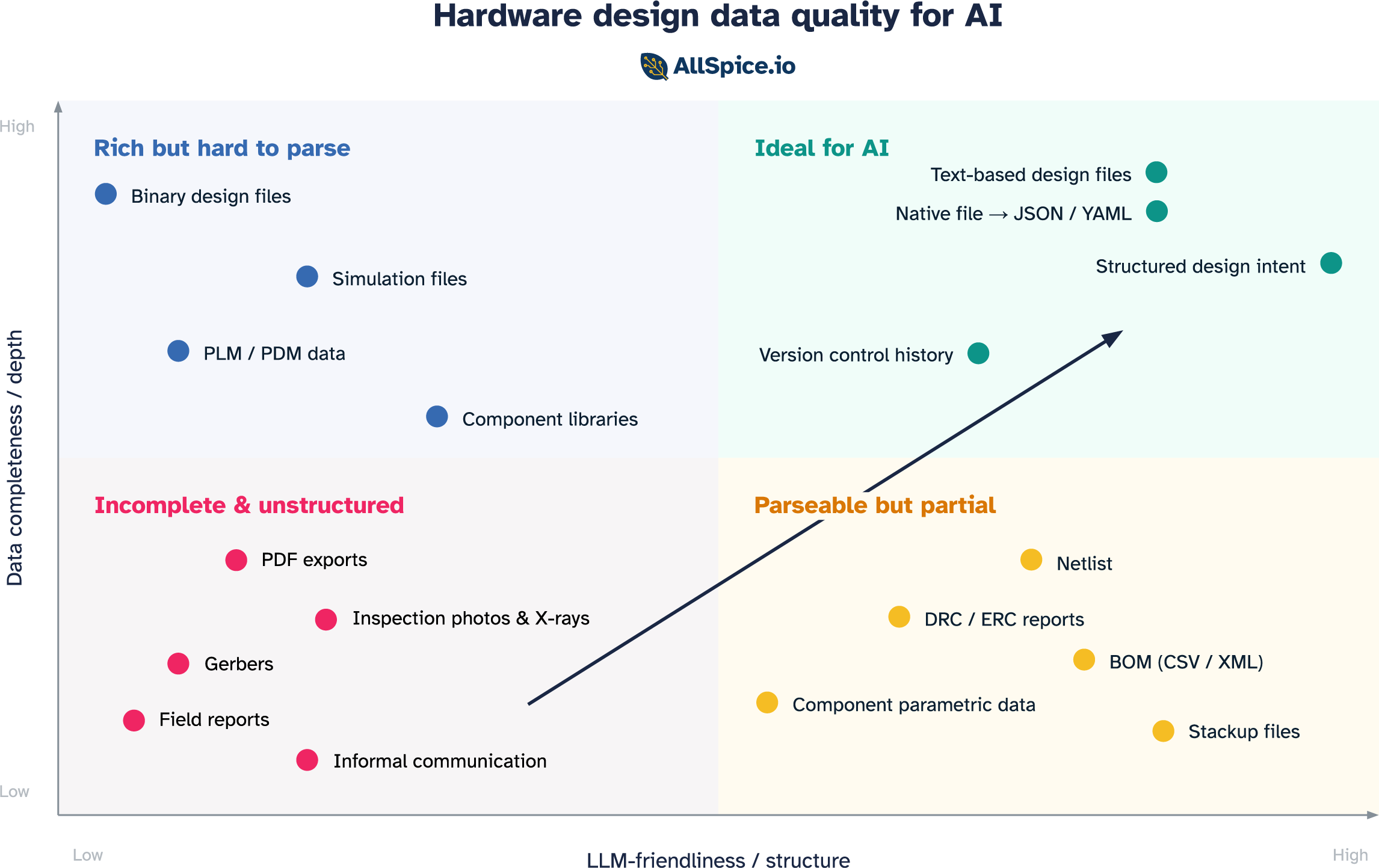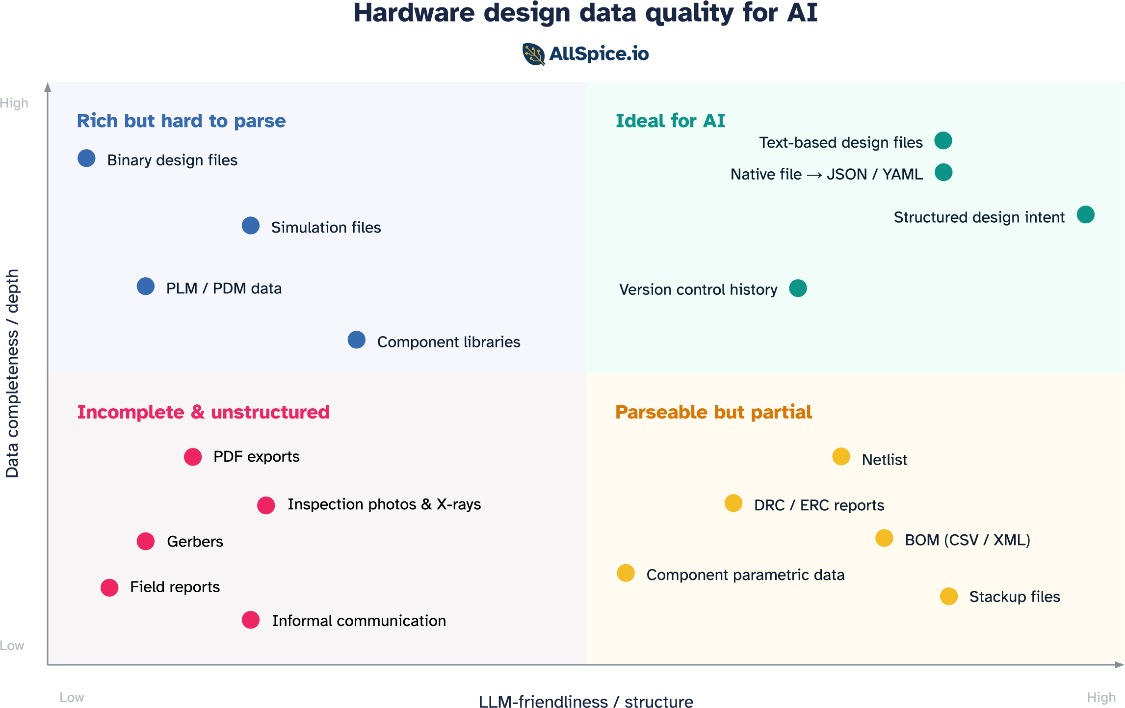 Plot the data sources hardware engineers rely on daily across those two axes and four distinct categories emerge.